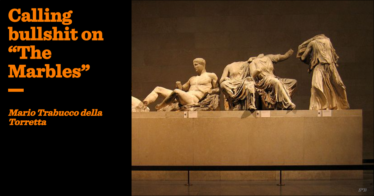 The nettle of the story comes back to what Stephens said early on: “if you steal something, you don’t get title”. Don’t tell that to Elgin, who, even having “stolen” the Marbles, didn’t get the British peerage he so wanted. Jokes aside, the core of the issue, and the most enormous hole in Wilkinson’s carefully constructed narrative, is indeed that little “if”. Sure, let’s talk about the restitution of stolen property. But where is the evidence that there was ever a theft in the first place? The so-called firman is allowed to make a brief appearance, immediately to be dismissed by Stephens as irrelevant because “there is no good reason to have it in Italian”. Little does he know that Italian was a lingua franca for Westerners in the Ottoman Empire and Italian were the artists who benefitted by the liberties granted by the document. At any rate, all this discussing of evidence is boring and unimportant — “it might have felt right in the 19th century, but it is wrong for the 21st century” says Victoria Hislop. End of. In the end, it appears that local museums and minor galleries are willing to return items on a lower standard of proof anyway, in exchange for the prized label of restitution champion. Surely this cannot be the case for national museums and assets of prime cultural significance?