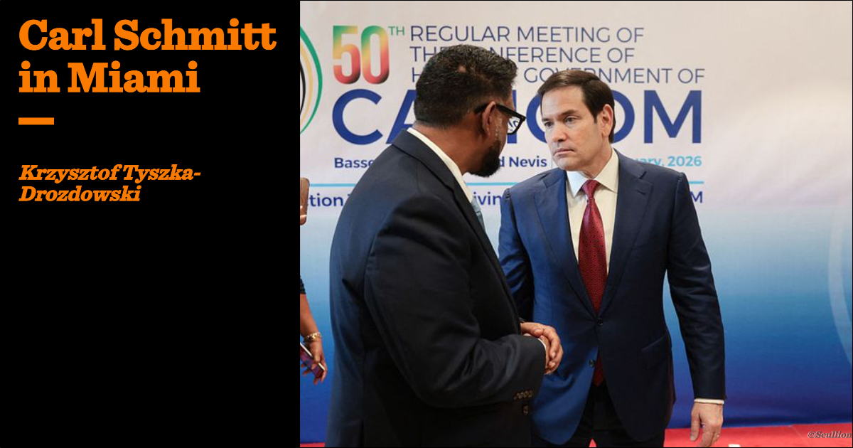 “The old world is gone … We live in a new era in geopolitics, and it’s going to require all of us to sort of re-examine what that looks like and what our role is going to be,” proclaimed Rubio. His strategy toward the Western Hemisphere traces neatly back to the vision of a multipolar world articulated by Carl Schmitt: a globe divided into “great spaces”, or Großräume.