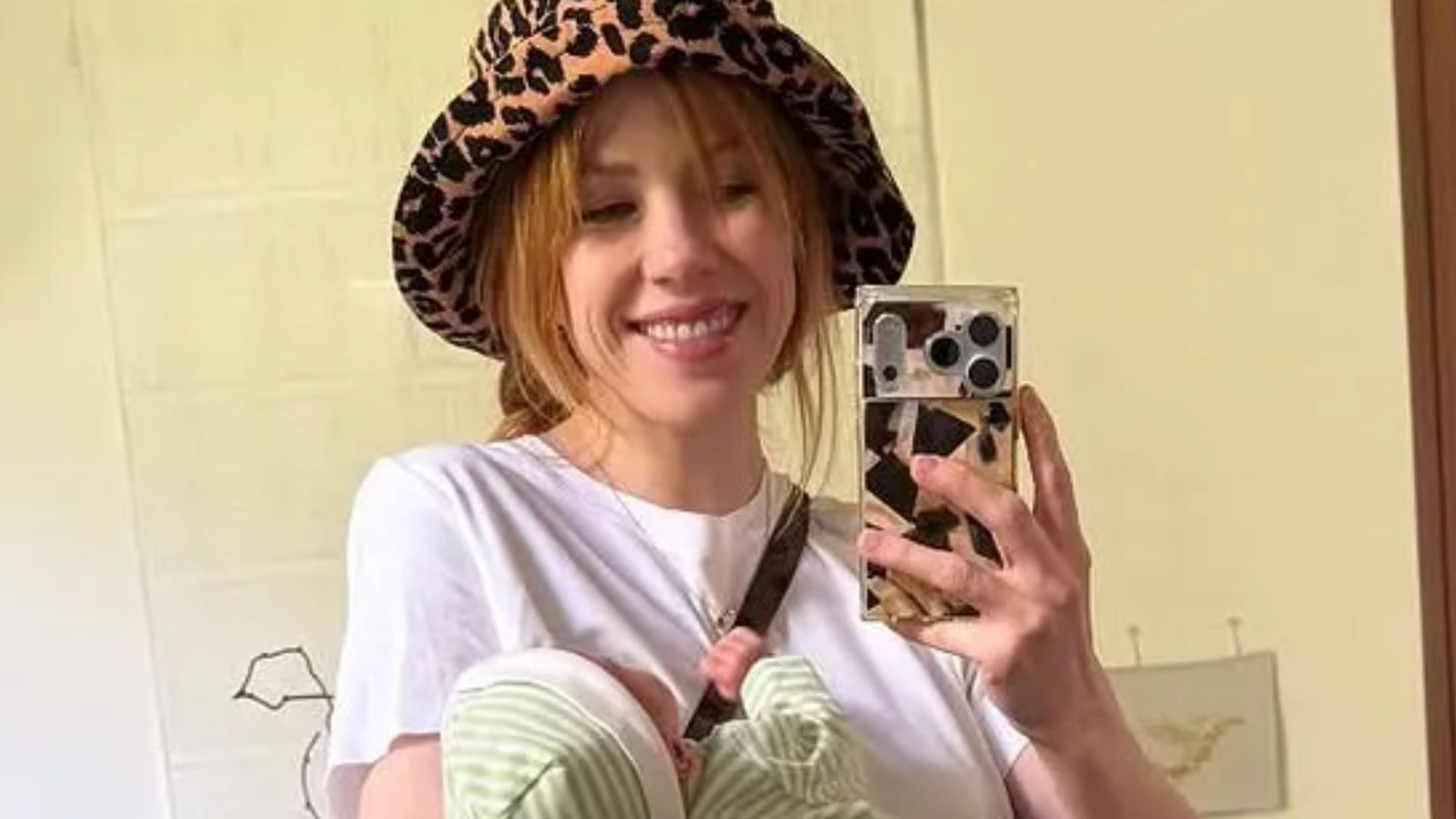 Carly posted a sweet mirror selfie of her holding her newborn baby.