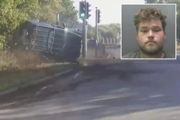 Moment paedo FLIPS car after driving on wrong side of road on way to court