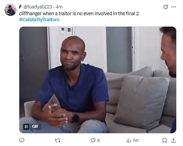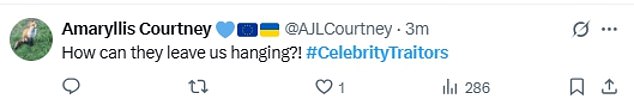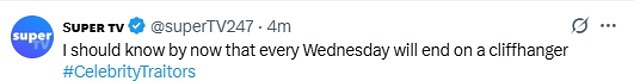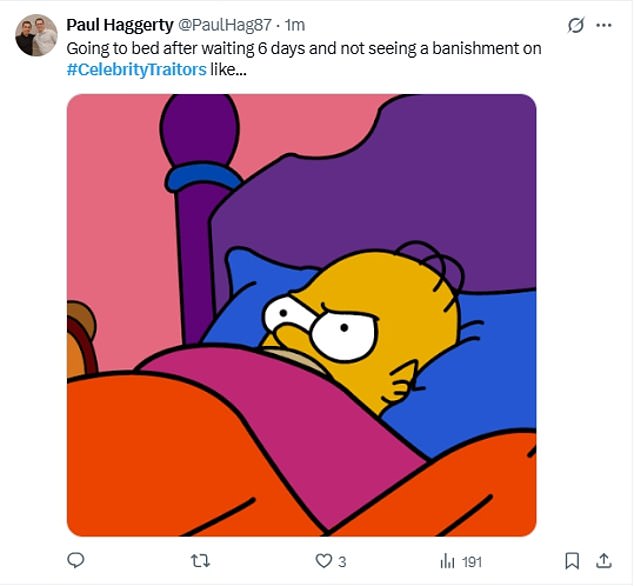 ‘Going to bed after waiting six days and not seeing a banishment on #CelebrityTraitors like…;
