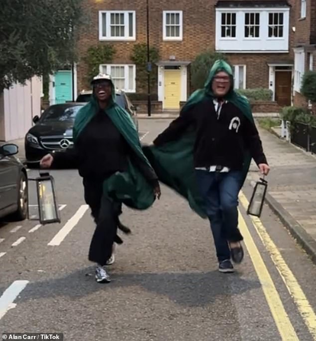 In a video shared on Alan’s TikTok last week, the pals are seen getting themselves ready to don their Traitors cloaks