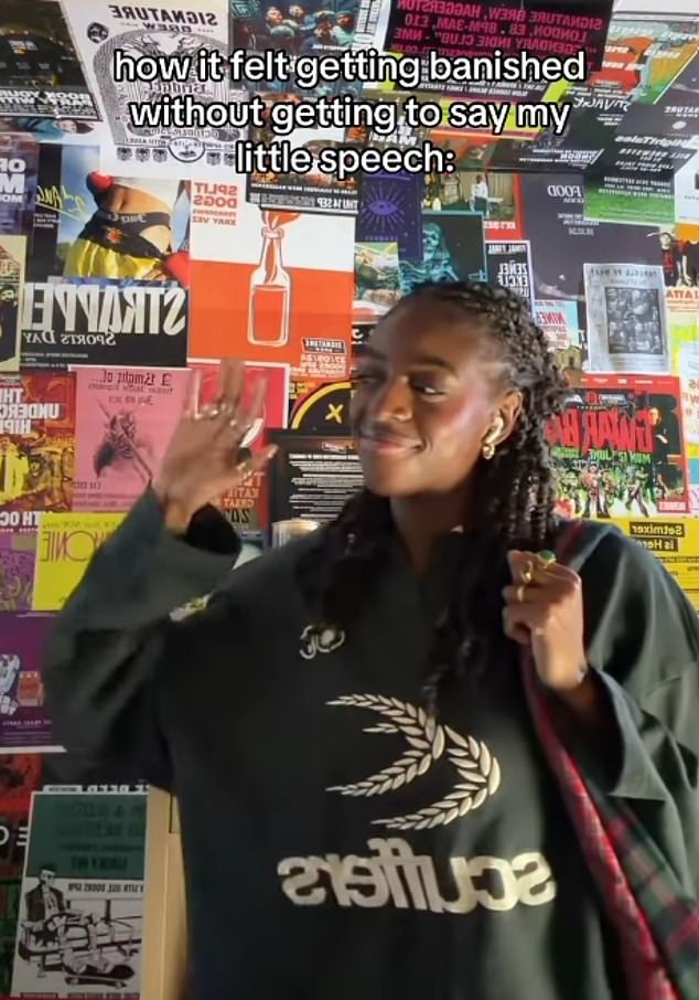 She wrote: ‘How if feels getting banished without giving my little speech’.