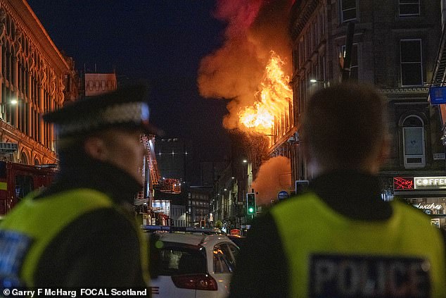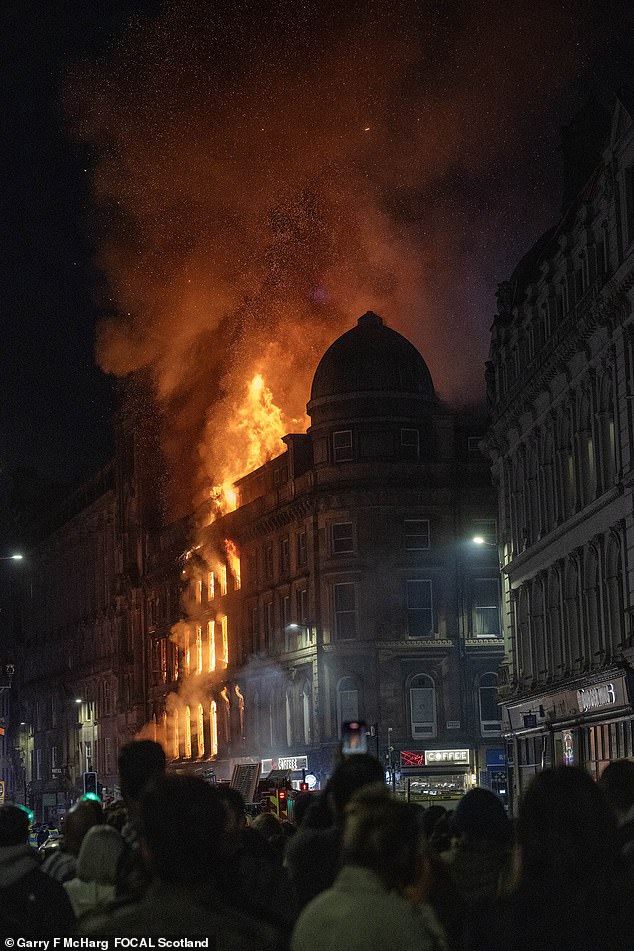 Among the crowds watching the scene unfold was Yvonne Kelly, 51, from Rutherglen, who said: ‘It’s not something you expect to see. I first realised there was a fire when I was on Buchanan Street, and could see smoke – I was wondering what was going on. When I got closer, I thought, “this is going to cause chaos”.’