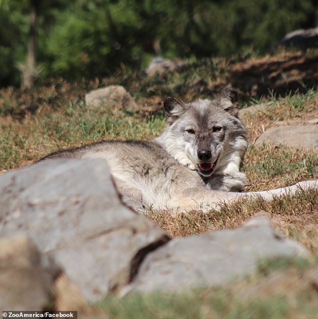 ZooAmerica said that its wolves can be difficult to notice for visitors, noting on its website that ‘you might mistake a wolf for a rock’