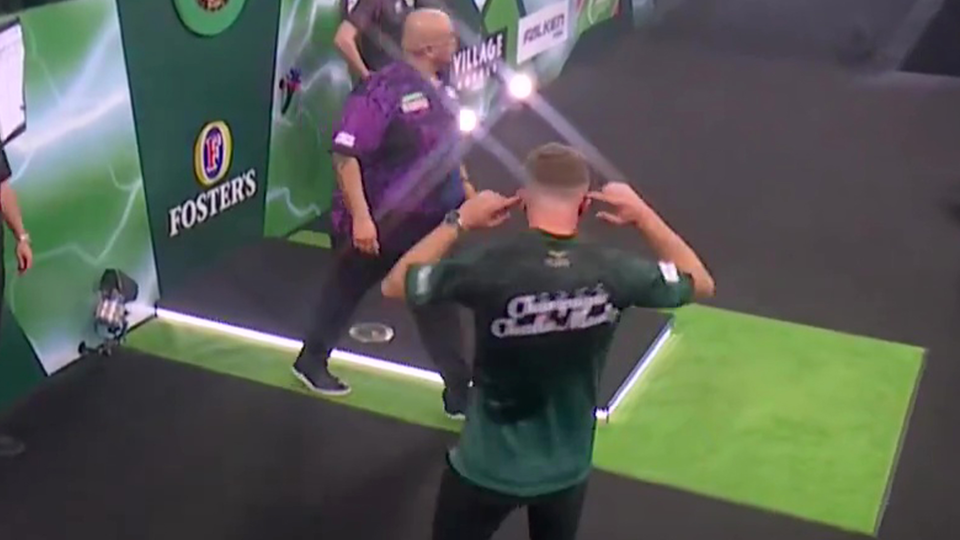 Darts star Charlie Manby’s match against Adam Sevada saw a chaotic moment where the players forgot to leave the stage.