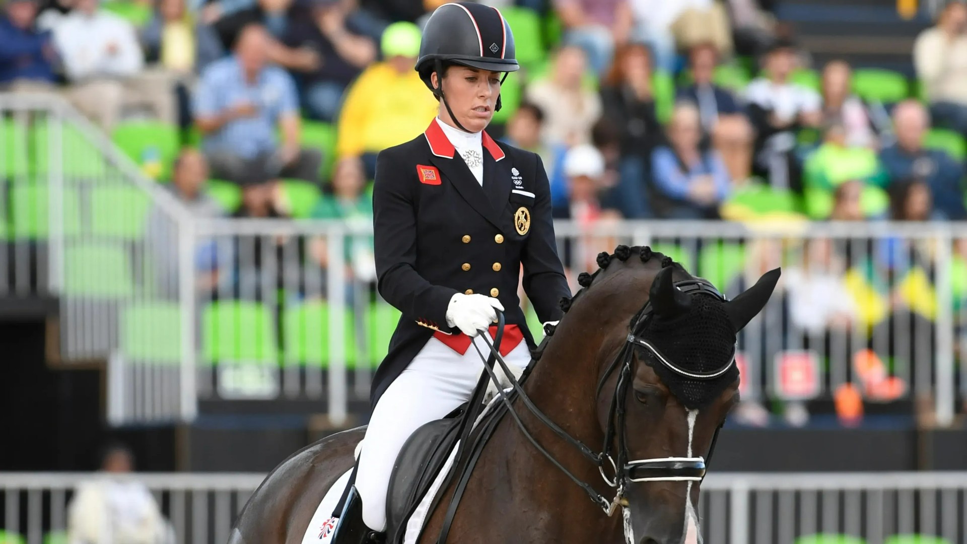 Britain’s joint-most decorated female Olympian was suspended for a year after a video emerged of her “excessively” whipping a horse 24 times on the eve of the 2024 Paris Games.
