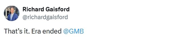 He captioned the post: ‘That’s it. Era ended @GMB.’