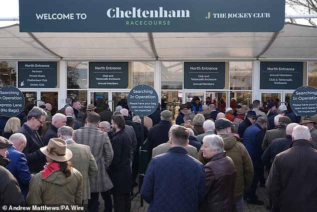 ‘We’ve been stuck just outside Cheltenham station for an hour,’ a racegoer said. ‘(There are) intruders on the track, police dealing with it.’