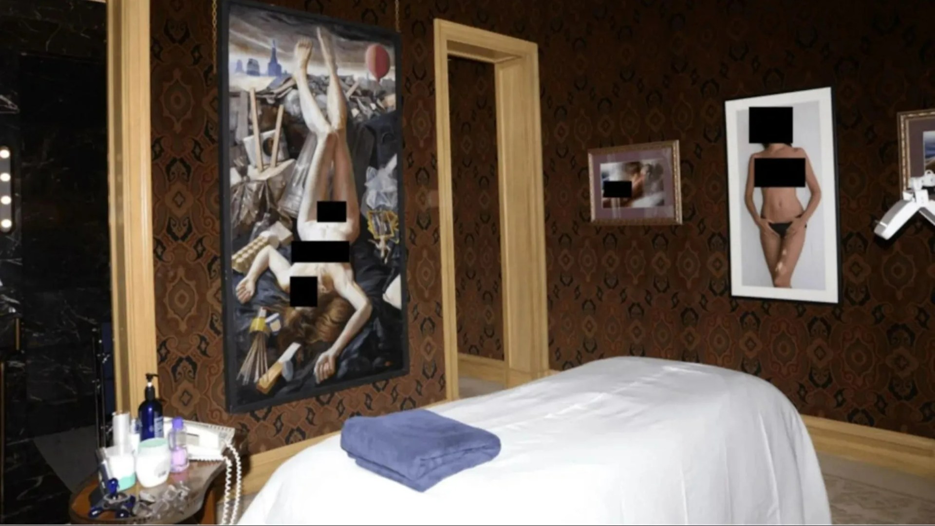 Depraved images show the massage room in Epstein’s Manhattan home with several images of nude women on the wallsCredit: Shutterstock Editorial