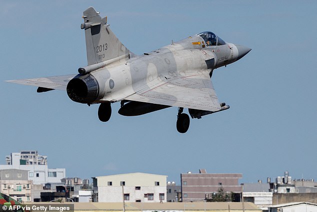 The island’s aviation authority added that China had designated a ‘temporary danger zone’ in Taipei’s airspace for 10 hours of live-fire drills scheduled for Tuesday, forcing officials to seek alternative flight routes.