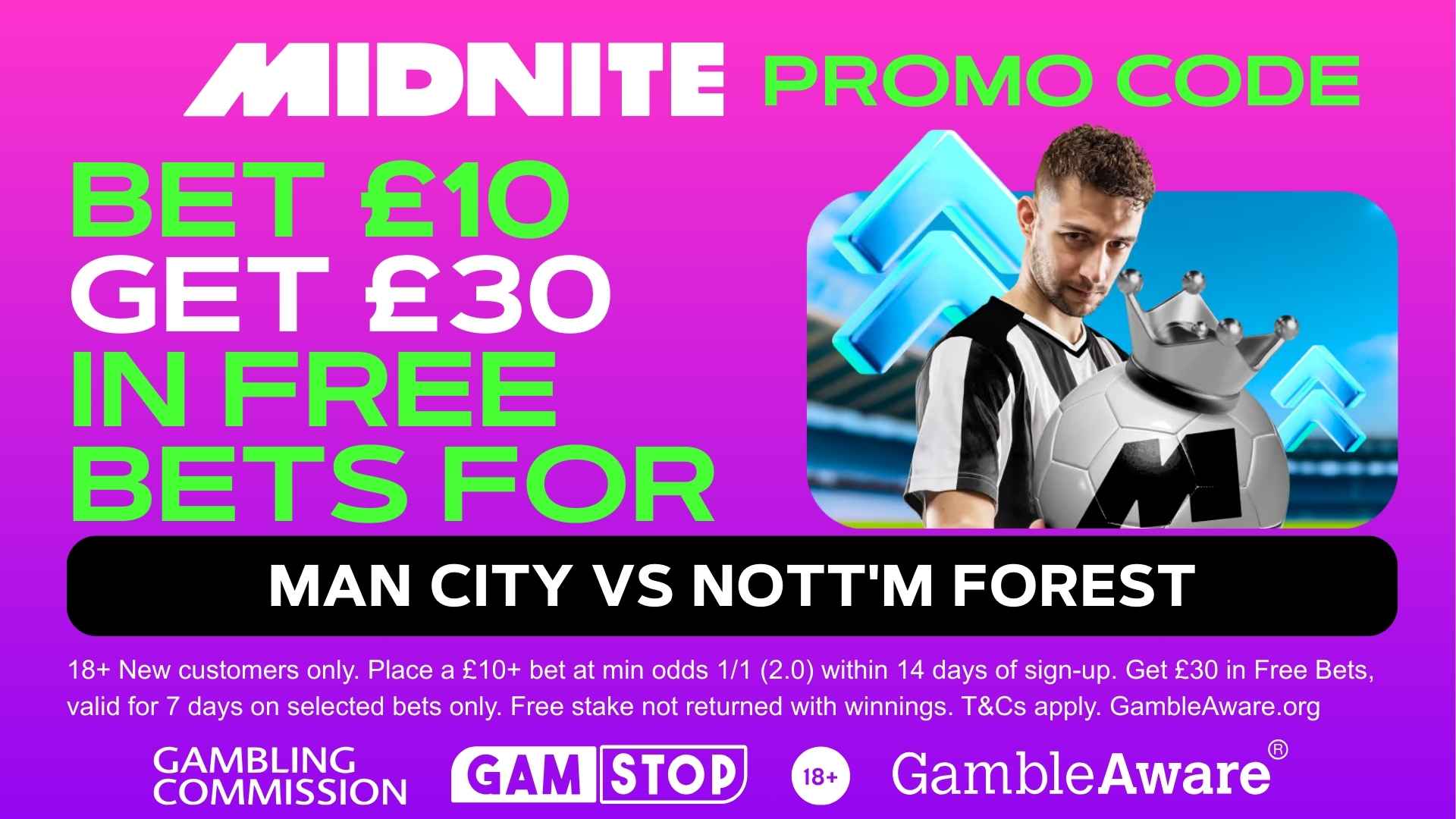 You can back the goals to flow with a top-tier welcome package. New customers can grab £30 in Free Bets when they sign up with the Midnite promo code and place a £10 bet on the action.