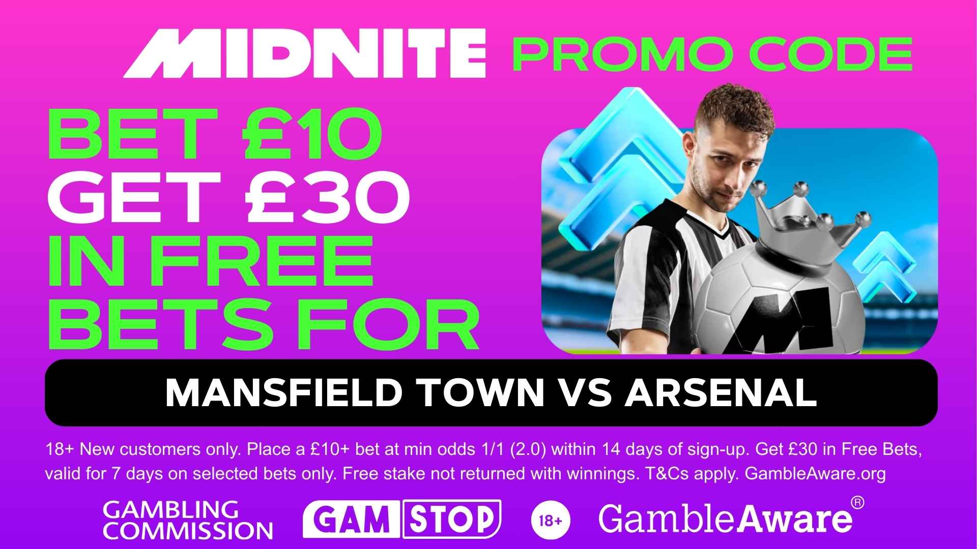 You can back the goals to flow with a top-tier welcome package. New customers can grab £30 in Free Bets when they sign up with the Midnite promo code and place a £10 bet on the action.