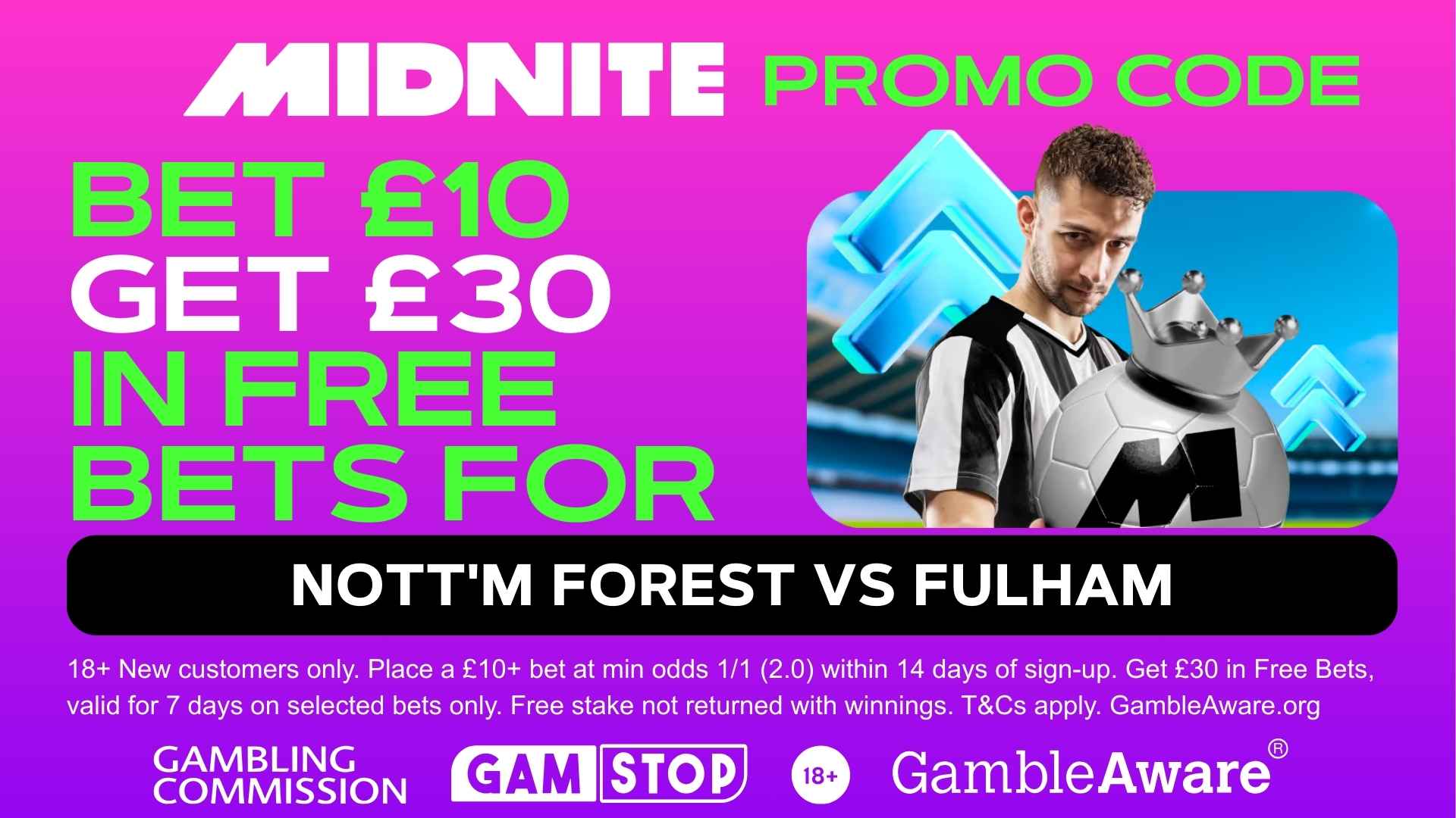 - Place a £10 bet on Nott’m Forest vs Fulham (or any market) at odds of Evens (2.0) or greater.