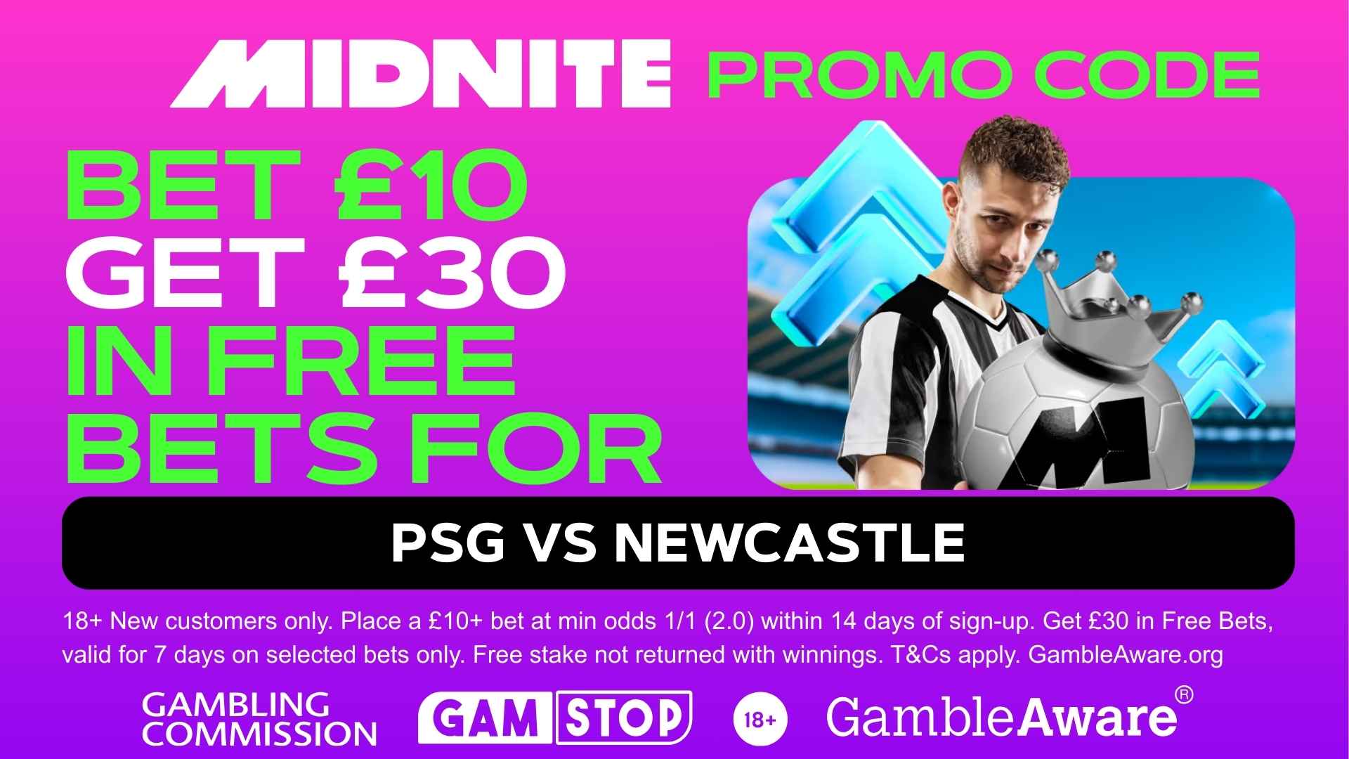 You can back the Magpies to upset the odds with a top-tier welcome package. New customers can claim £30 in Free Bets when they sign up with the Midnite promo code and place a £10 bet on the action.