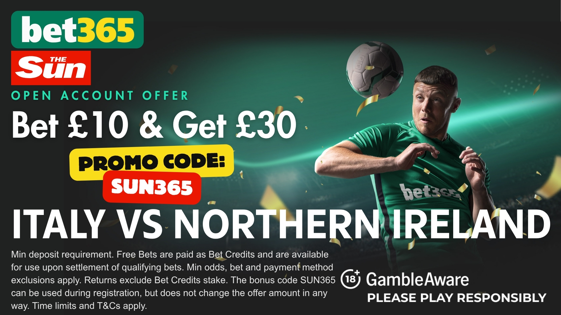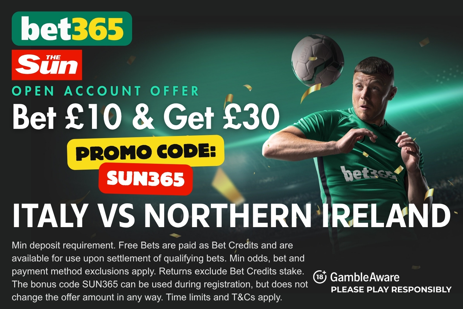 Whether you’re expecting a triumphant Italian redemption story or a historic upset from the plucky visitors, you can kick off the action with a 300% welcome bonus using the bet365 promo code SUN365.