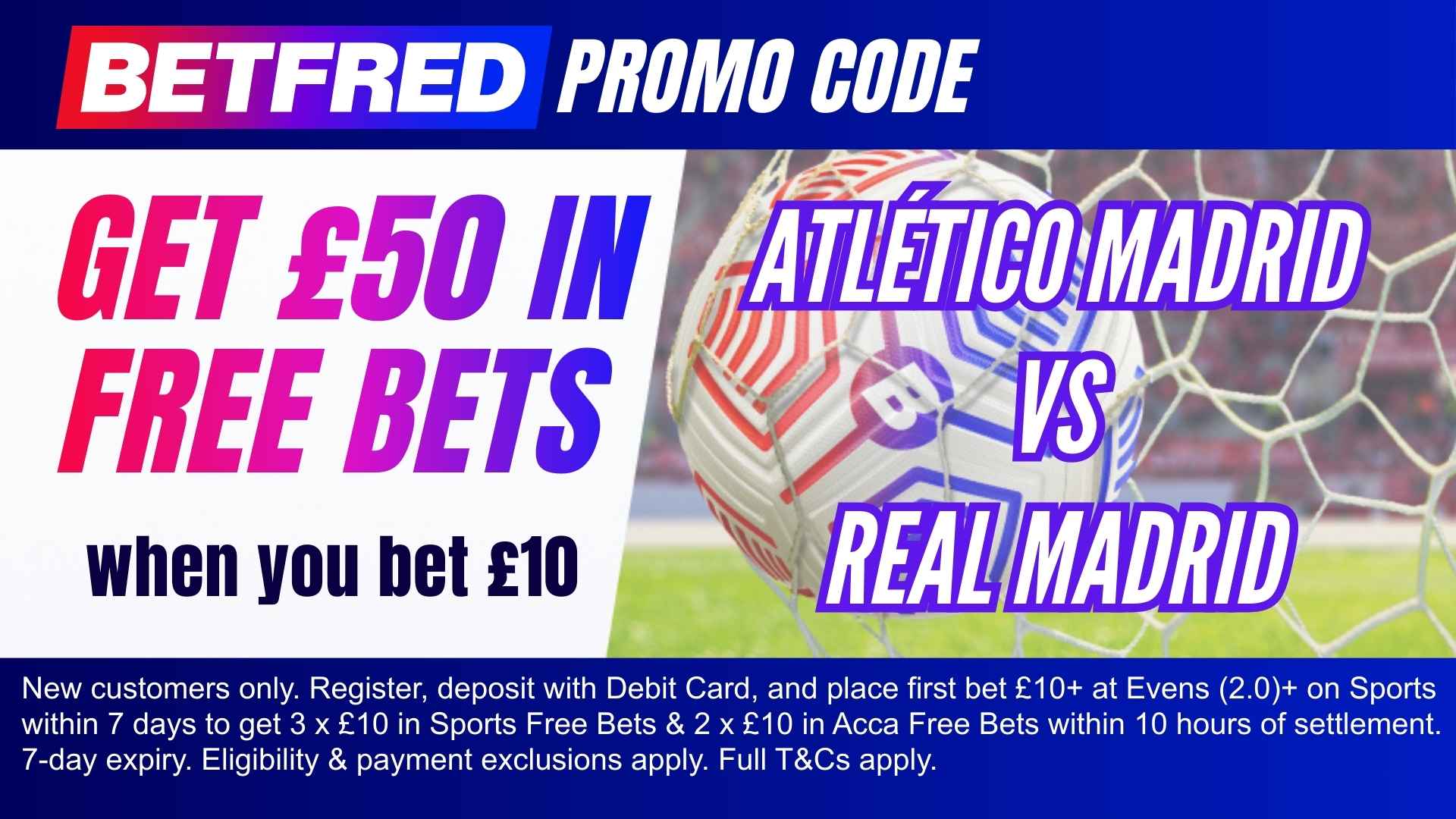 - Place a qualifying wager of £10 or more on Atlético Madrid vs Real Madrid (or any sports market) at odds of Evens (2.0) or greater.