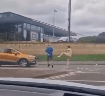 Shocking footage of Rhys Hicks’ drug-powered bender captures him violently punching cars and karate kicking members of the public.