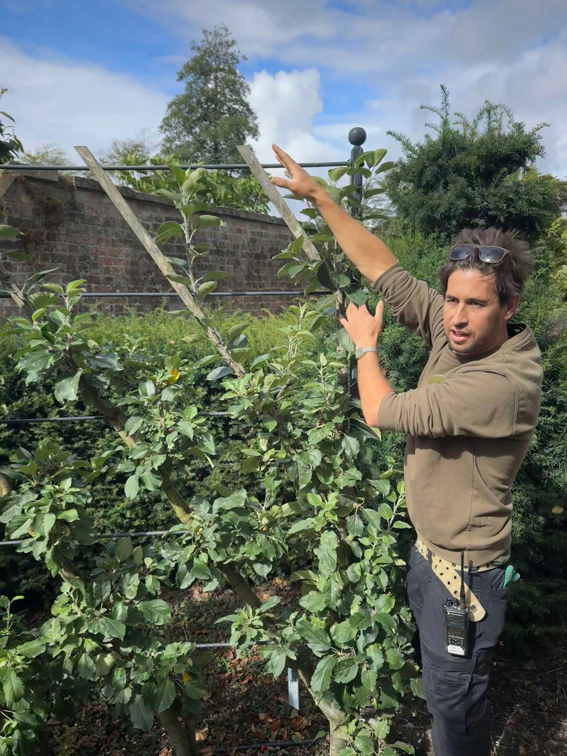 Head Gardener Andy “Apples” Lewis prunes four times a year, in February, June, August and October. Aesthetics and fruit production are balanced, and aphids, mildew and first signs of canker are nipped in the bud, reducing the need for the chemicals.