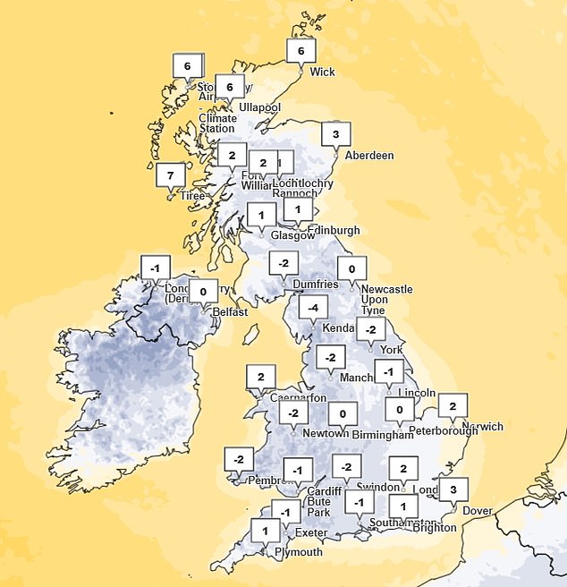 Met Office forecaster Dan Stroud said: ‘We’re losing this sort of settled but chilly conditions, and bringing in something a little bit more showery with more wintry hazards in the forecast, particularly for the north of the country.’