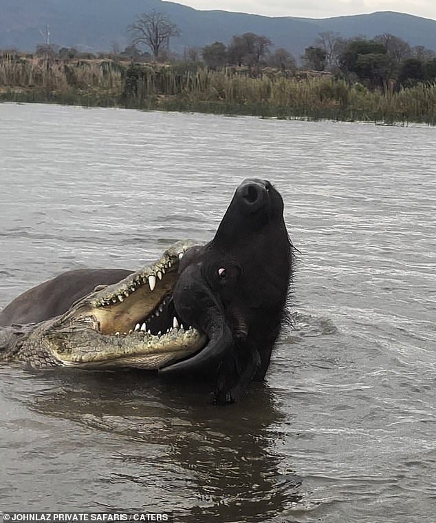 Mr Mceric Bobota said: ‘The crocodile was hungry and wanted to kill the buffalo to have food.