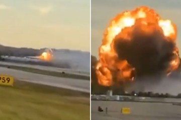 The plane appeared to tip upwards slightly, suggesting the wheels just leave the tarmac, before a colossal fireball mushroomed into the sky.