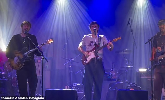 Taking to her Instagram Stories Jackie shared footage of Cruz on stage as he rocked out with his guitar and wrote: ‘Secret pop up gig 2’