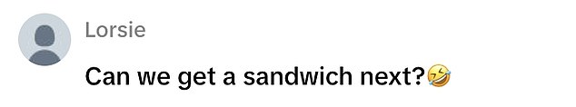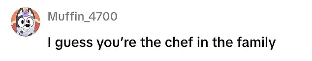 But one user responded to the loved-up clip with a sardonic remark in the comments section alluding to the pair’s age-gap, as they wrote: ‘I love when a son cooks for his mum’.