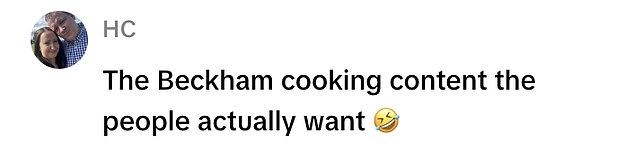 ‘The Beckham cooking content the people actually want’; ‘Best chef of the Beckhams!’; ‘Now photograph some elephants’.