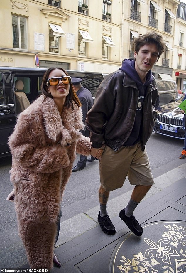 Meanwhile, Jackie, 30, cut a stylish figure in a statement pink faux-fur coat in Paris which she paired with blue denim jeans and chic burgundy high heels.