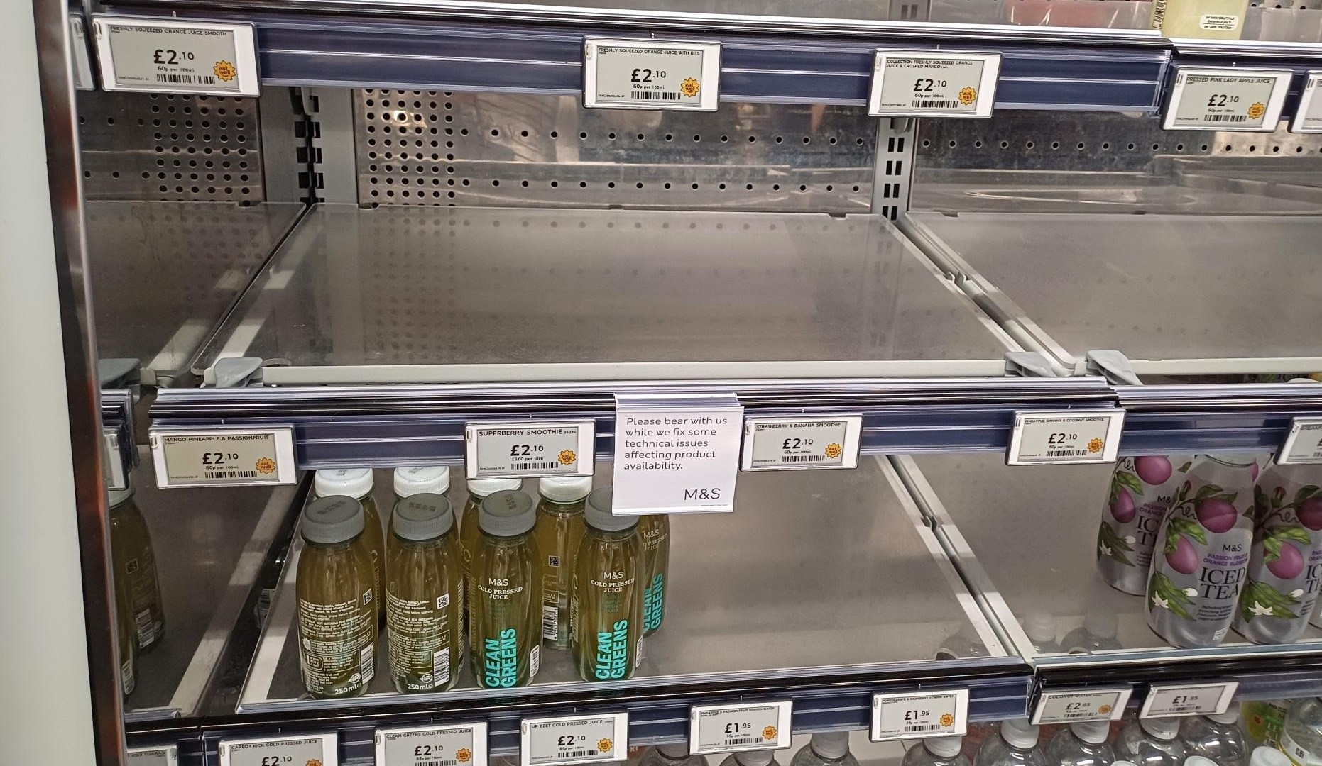 Shelves were empty after logistics systems crashed, while fashion sales dropped by 16.4 per cent and online sales by 42.9 per cent.