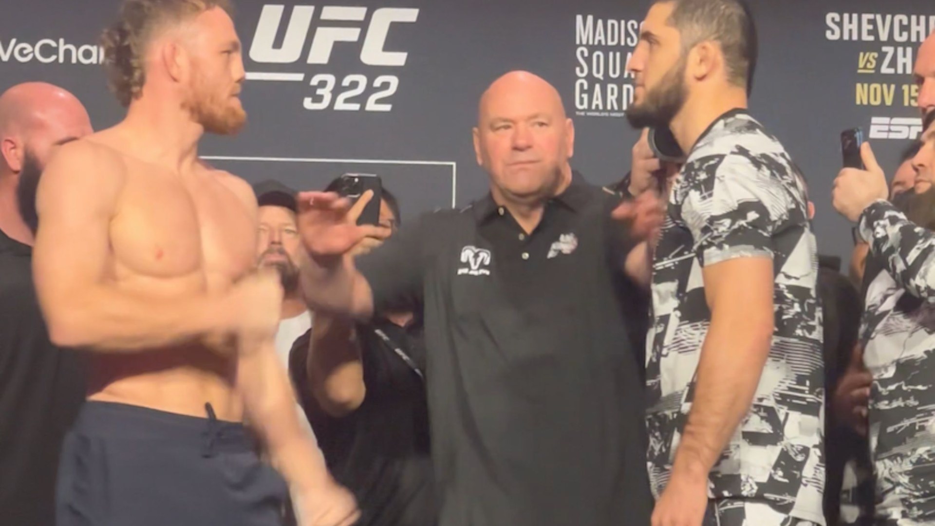 ISLAM MAKHACHEV and Jack Della Maddalena took part in a tense final face-off in front of a raucous crowd, which Dana White once again had to separate.