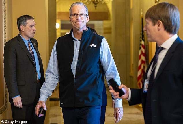 Trump weighed in on the latest development when he returned to the White House on Sunday, telling reporters: ‘It looks like we’re getting close to the shutdown ending.’