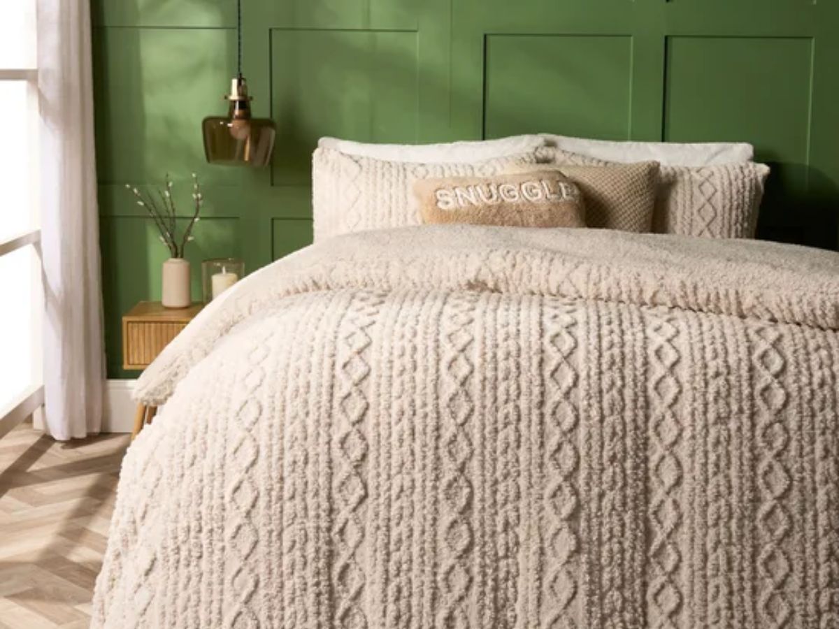 The Cable Knit Fleece Duvet Cover Set has up to 44% off, so you can buy the single for £14.99, the double for £26.99 or the king for £32.99.