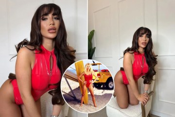 Towie’s Chloe Brockett looks red hot as she channels Baywatch’s Pamela Anderson