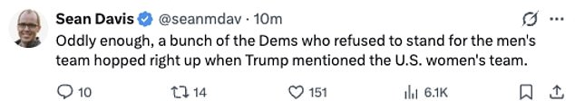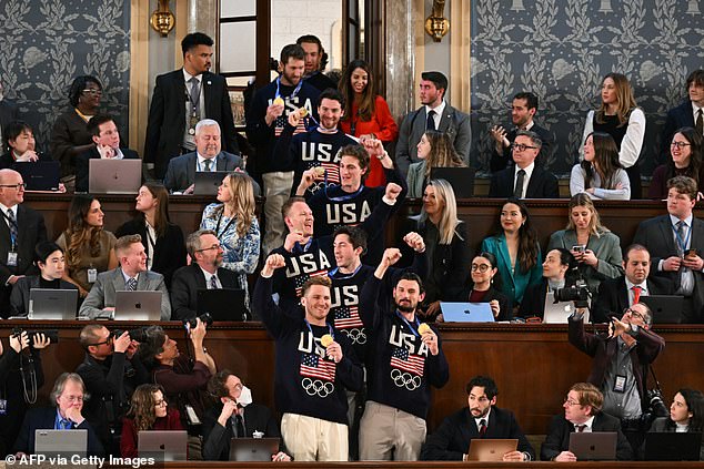 But Democrats inside the room refused to stand up for the team, sparking fury across social media. However, they did stand up when Trump later announced the women’s Winter Olympics team would visit the White House after rejecting his initial invite.