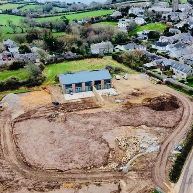 Aerial photos show the huge new barn conversion set against the tiny Cornish village