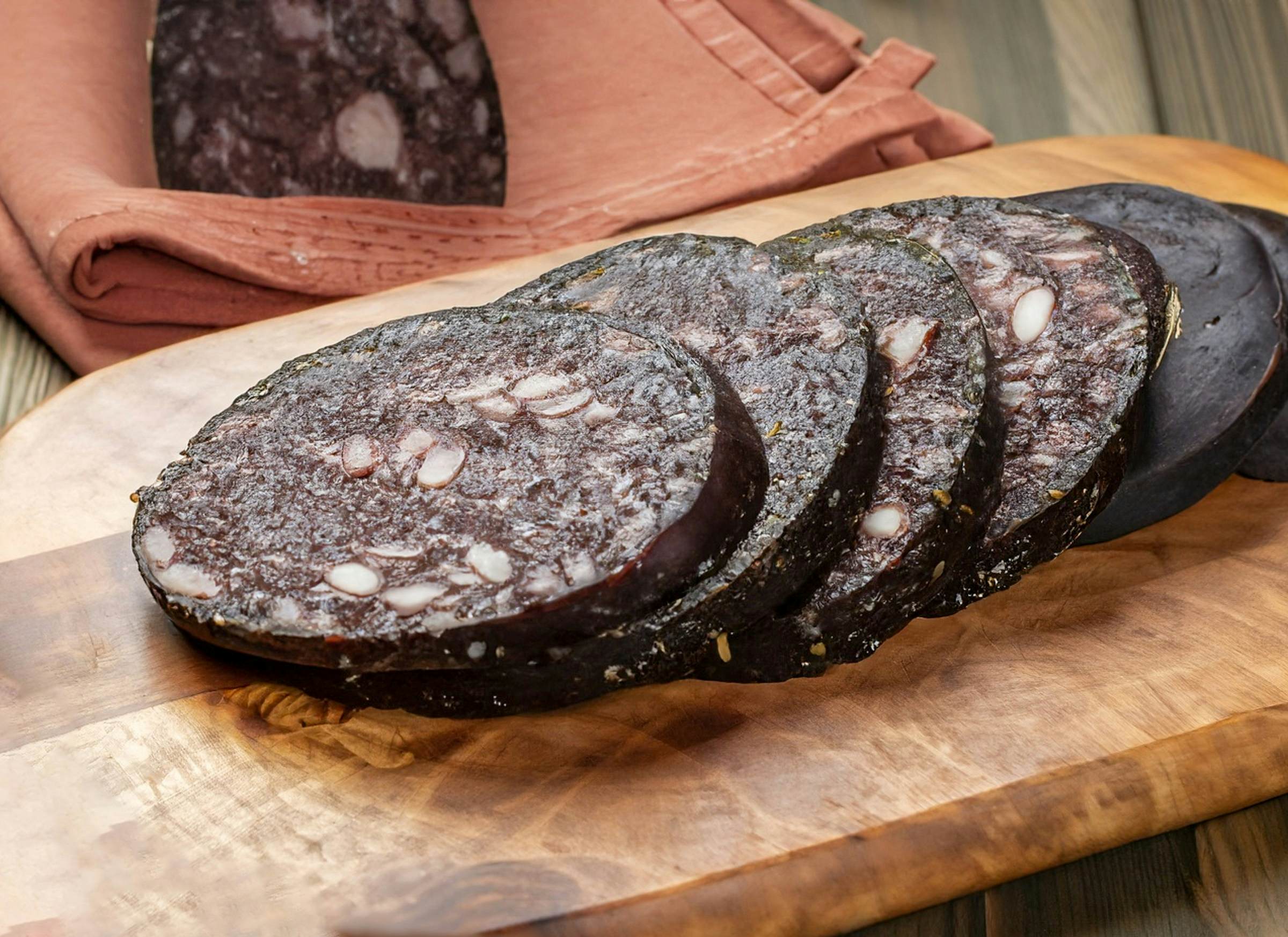 So far the food, apart from the crackers, has been squelchy or soggy; so for the next course, black pudding slices of good quality and deep colour — Morcilla de Burgos, say, or an Irish variant such as Sneem or Clonakilty — can be fried with whole black peppercorns until crisp on the outside before garnishing with black rice and black truffles.