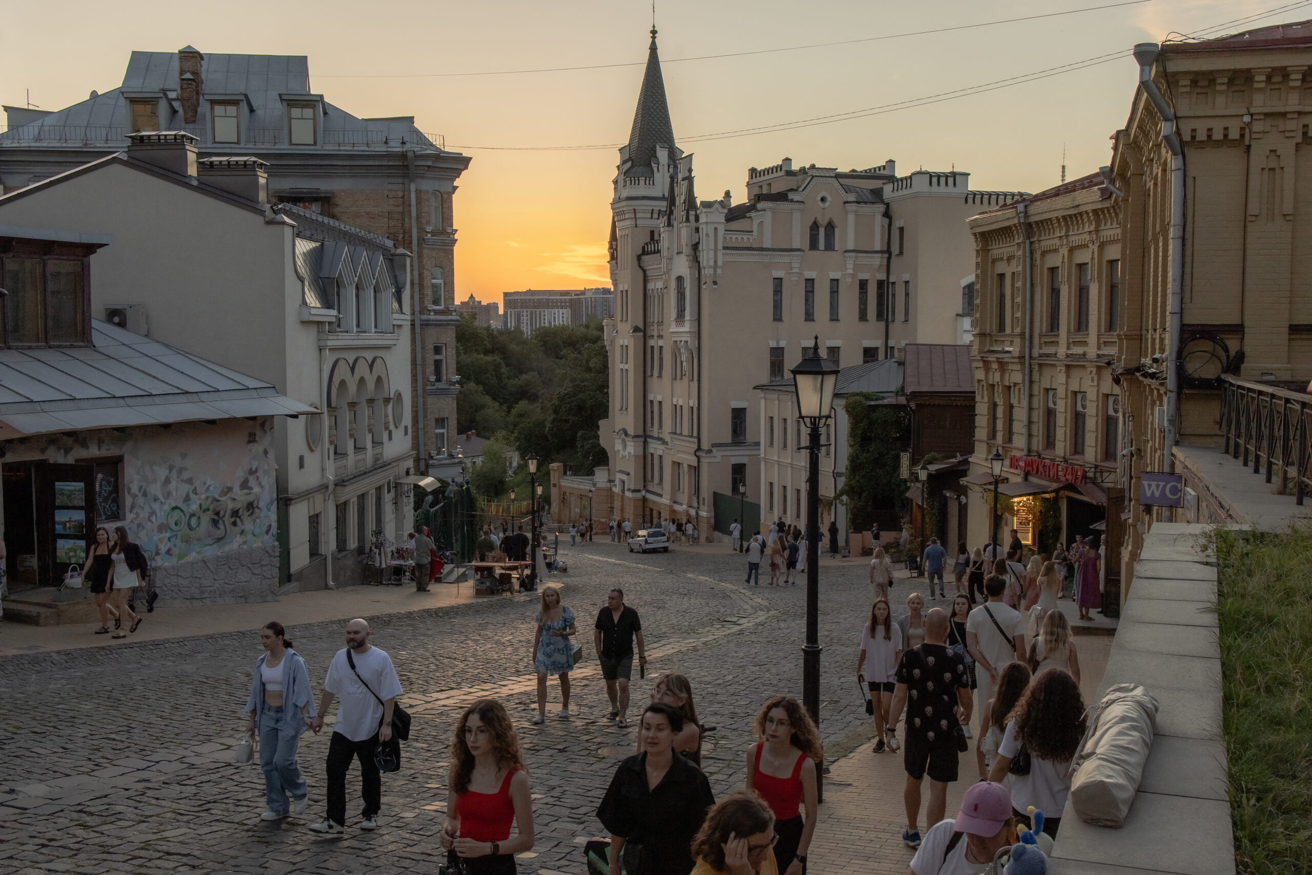 At dinner the next night I talk about the air raid sirens with Denys, a thirtysomething man who works for a humanitarian organization. Whenever the sirens activate, Denys says, he checks Ukrainian military monitoring channels on the social media app Telegram to find out what kind and quantity of weapons are heading to Ukraine. He’s also developed some personal techniques to figure out whether sheltering is worth it. “I know that if there are many Shaheds [Iranian-made drones that Russia uses to attack Ukraine], but no missiles, then ballistic missiles will come later,” he says, explaining that the Shaheds distract and deplete air defense systems, clearing the way. “They sound like a motorcycle in the sky.”