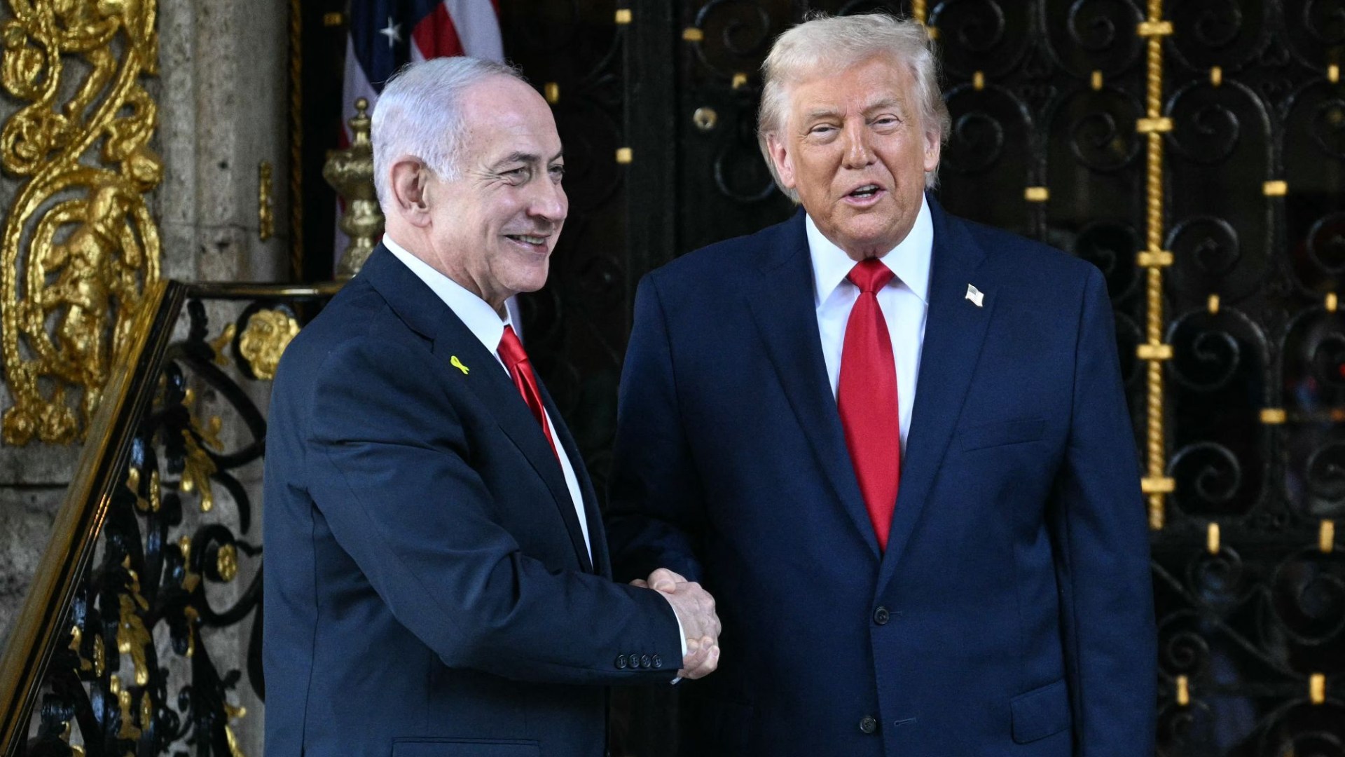 PRESIDENT Donald Trump greets Israel’s Benjamin Netanyahu yesterday — and said the US is doing “everything we can” to secure the release of the final Gaza hostage.