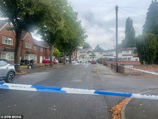 Mahamed Mahamad, 37, allegedly slashed at DPD worker Aqeef Ali 29 times with a huge serrated knife here on Gibson Road, Handsworth in Birmingham (pictured: the scene in the hours after the attack)