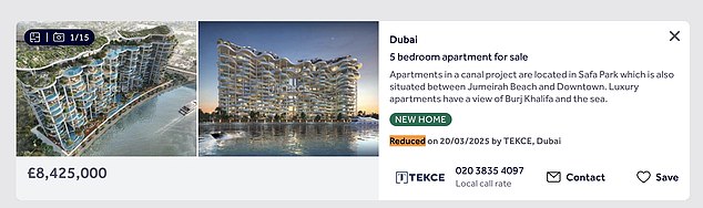 Meanwhile, a sprawling seven-bedroom home in the upscale residential area of Arabian Ranches dropped £1.1million off its original asking price off its £5.5m original asking price.