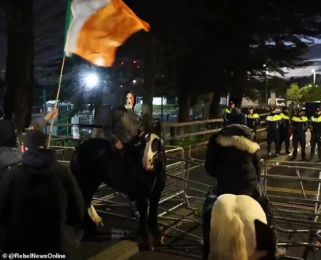Marauding hordes of masked yobs – some on horseback (pictured) – descended on the prosperous Dublin suburb of Saggart armed with rocks, fireworks and even fire bombs