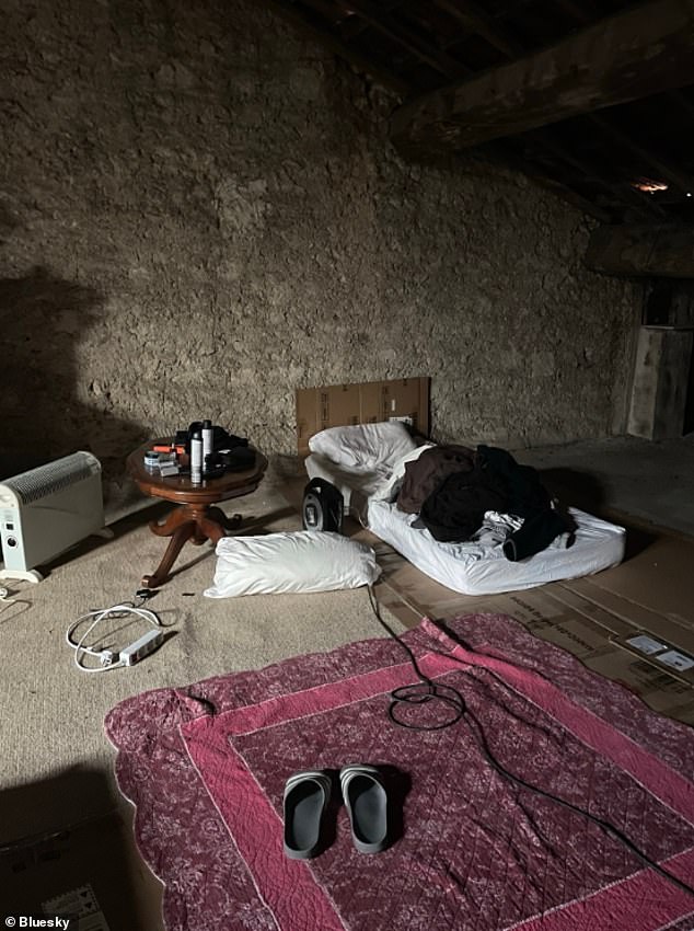 Users are sharing hilarious snaps of their bizarre festive sleeping arrangements on social media – and this image, of a cave-like attic room likened to a ‘meth den’, has proved the most amusing online