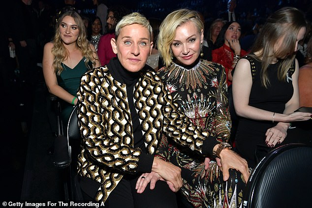 Ms DeGeneres previously explained her transatlantic move by saying: ‘We got here [to the UK] the day before the election and woke up to lots of texts from our friends with crying emojis, and I was like, ‘He got in’. And we’re like, ‘We’re staying here’.’