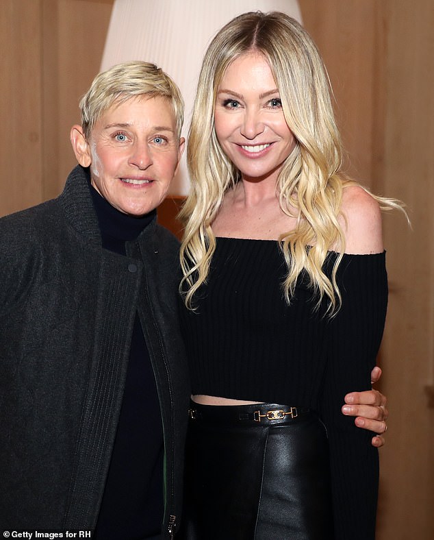Ellen DeGeneres has opened the doors to her very modern and massive mansion in England after fleeing the US last year – seen with wife Portia de Rossi in in 2022