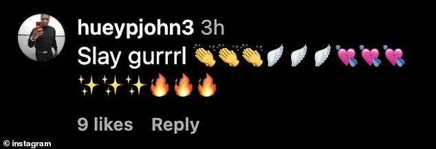 ‘Slay gurrrl 👏👏👏🪽🪽🪽💘💘💘✨️✨️✨️🔥🔥🔥,’ one fan gushed.