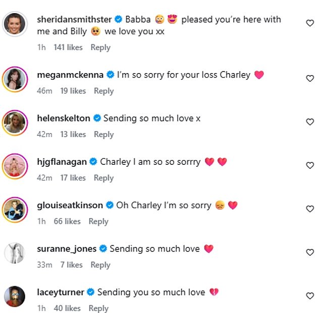 A whole host of Jamie and Charley’s soap star pals took to the comment section to share their condolences