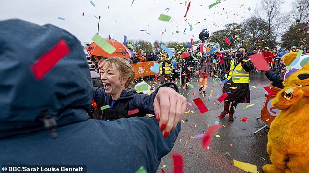 After crossing the finish line at around 3.30pm today in Pudsey, Leeds, having started in Kielder Forest, Northumberland, Cox said: ‘I can’t believe it, oh my gosh. That was the hardest thing I’ve ever done. Oh my gosh, I can’t believe it, I can’t believe it, hello Yorkshire.