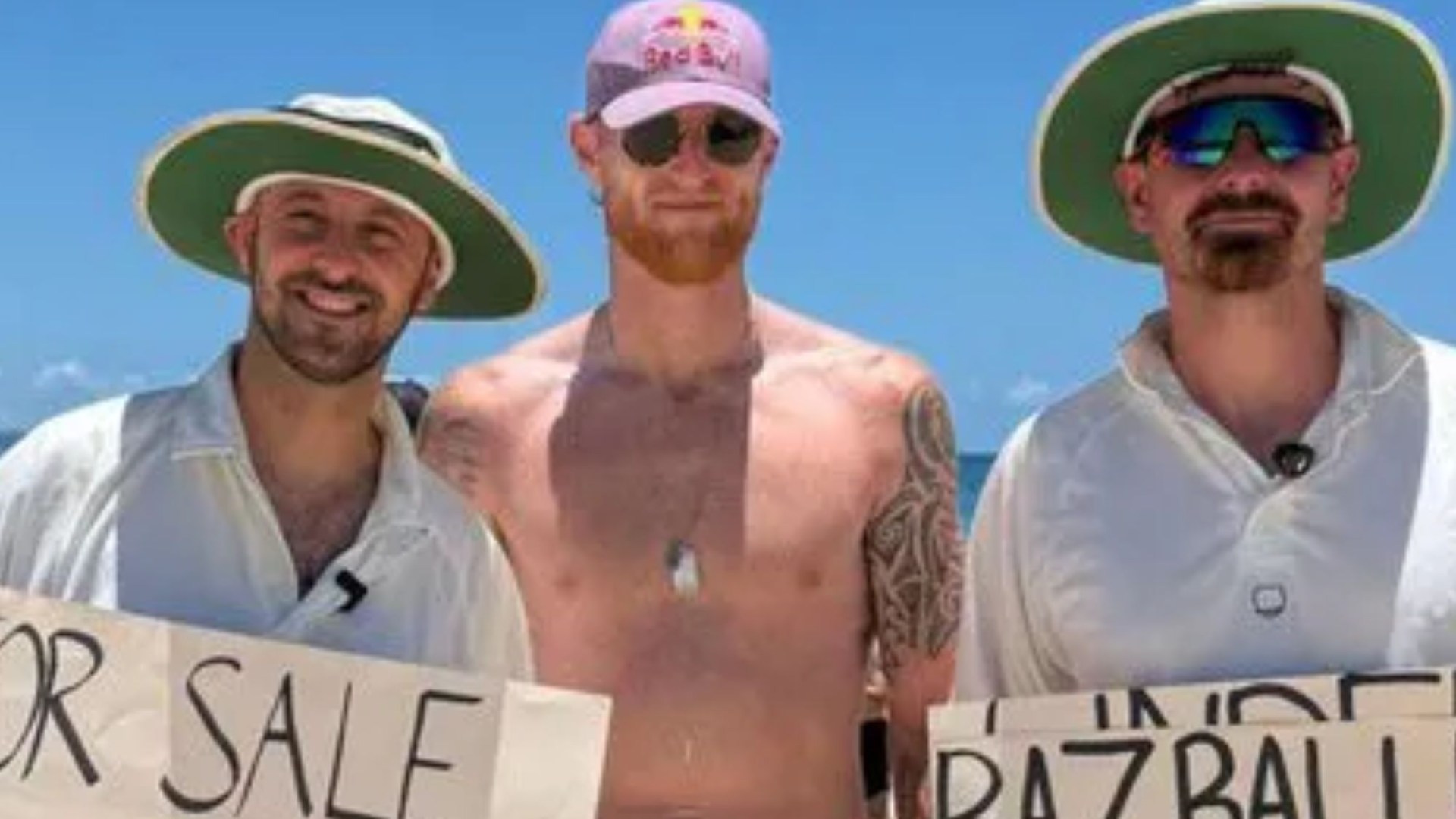 Stokes even posed on the beach with a couple of mickey-taking local DJs, who were holding placards proclaiming ‘For sale moral victories’ and ‘Bazballers anonymous free counselling.’